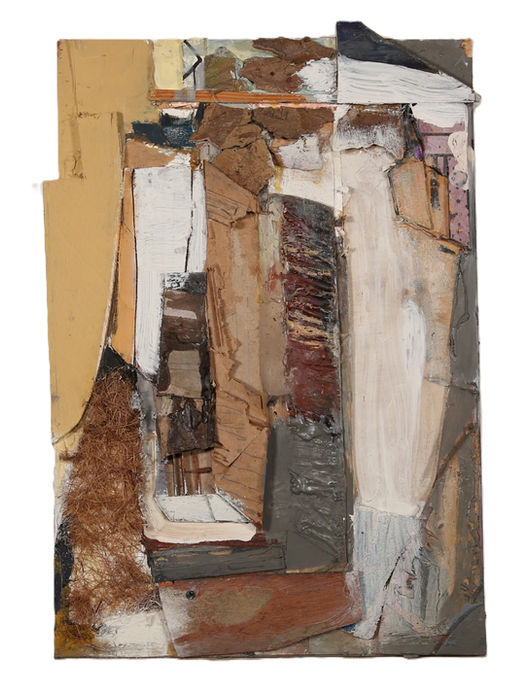 Oil paint and torn cardboard relief
